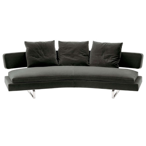 Designed to create the setting for leisure activities, Arne stands out for the curved shape that envelops the user. It is an invitation to socialise and share moments together, to converse and watch television shows on a large screen. It has all the features of the protagonist designed to be centrally placed in the room and, even placed against a wall, it never loses its image of comfort and lightness conveyed by the aluminium supports on which both seat and backrest seem to be suspended.